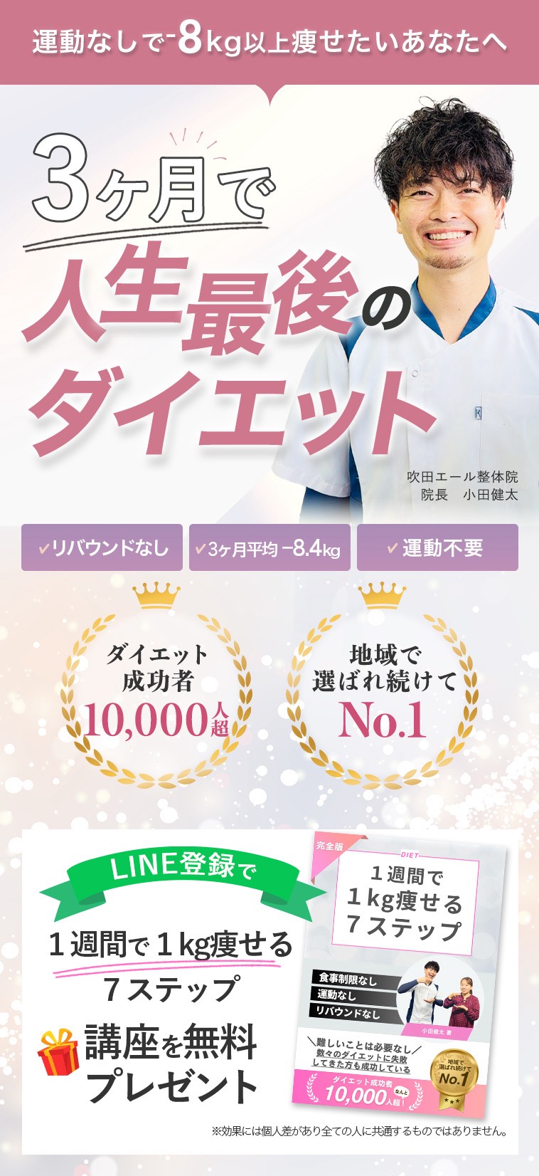 国家資格である柔道整復師の資格を所有しているので、我慢しないダイエットが実現可能です。